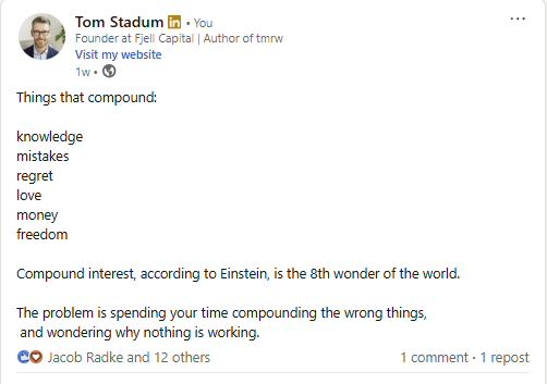 I wrote on LinkedIn a few weeks back about the things that compound.