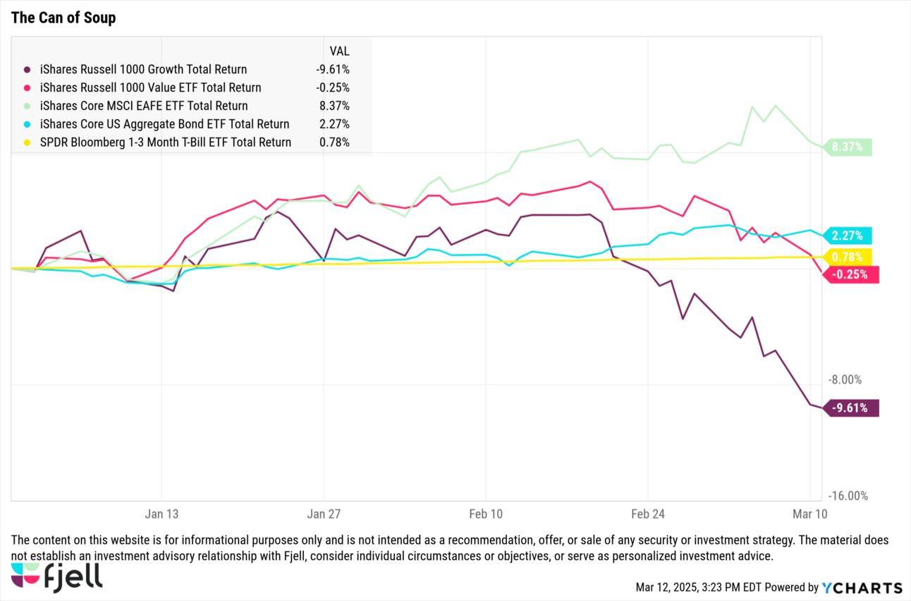 Not everything in the grocery store was on sale—only the overstocked soup. The same goes for the markets. While some areas are getting hit hard, value stocks are holding up, international stocks are performing well, bonds remain strong, and cash is cash.