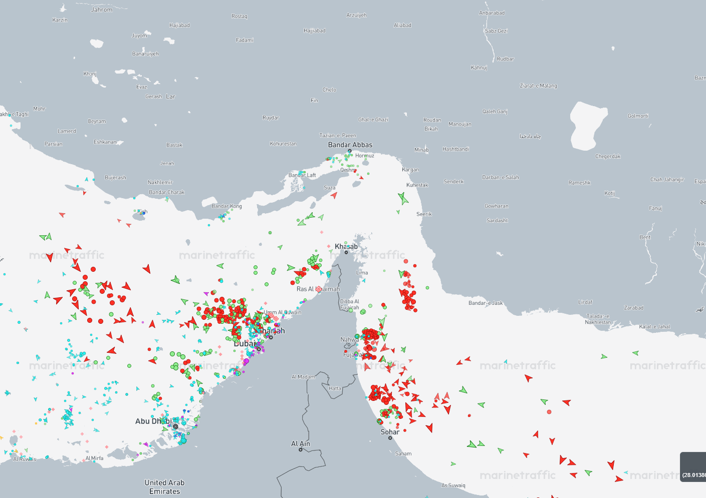 Screenshot of Marine Traffic at 9am CT 3/26/26