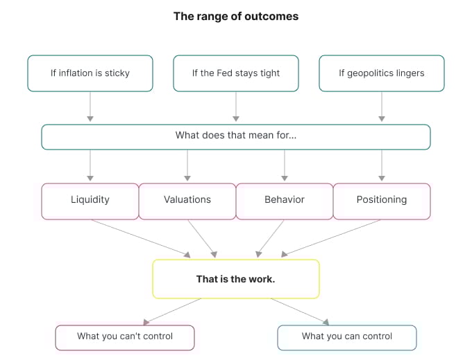 And underneath all of it, they are walking through the range of outcomes. Not because prediction is the job, but because preparedness is. If inflation proves sticky, if the Fed stays tighter, if geopolitical stress lingers, what does that mean for liquidity, valuations, behavior, and the way capital should be positioned from here?