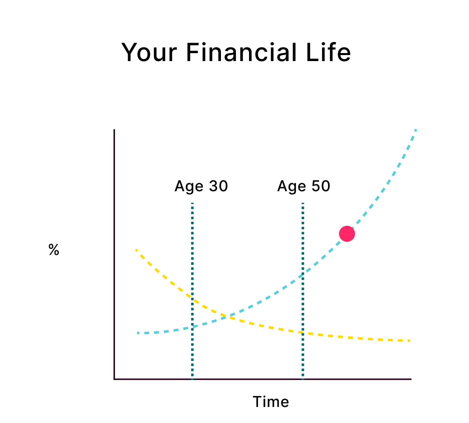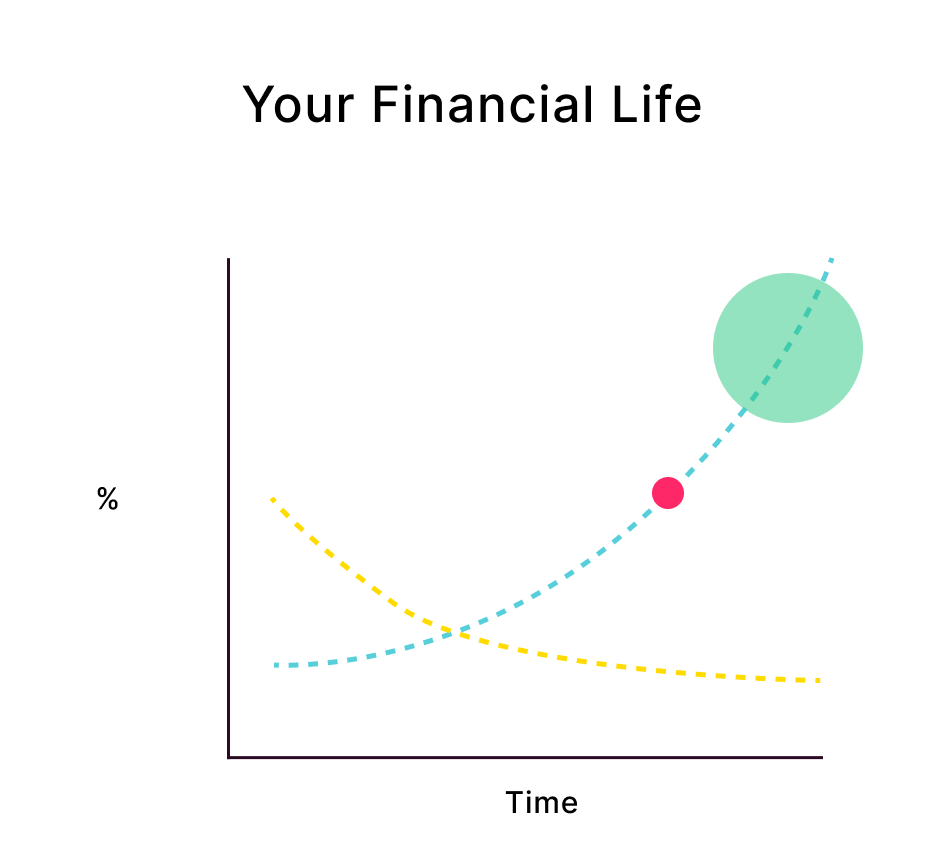 Yellow Line: Your Contributions | Blue Line: Yearly Portfolio Growth | Pink Dot: Your Retirement